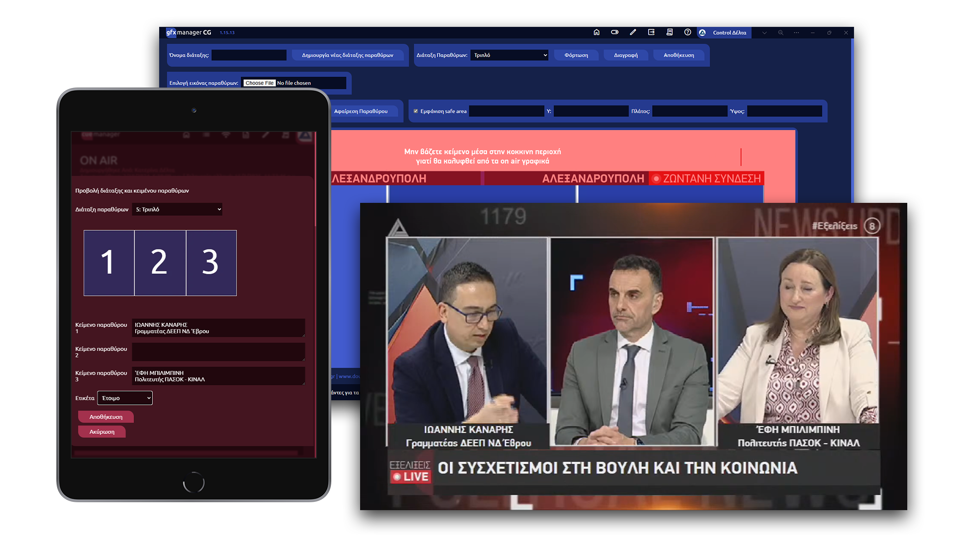 Ανακαλύψτε τις καινοτόμες εφαρμογές μας που σχεδιάστηκαν για να ενισχύσουν την εμπειρία σας στη δημιουργία γραφικών. Οι λύσεις μας επιτρέπουν τη δημιουργία καθημερινών γραφικών για ζωντανές εκπομπές, ενώ παράλληλα προσφέρουν εξειδικευμένες δυνατότητες, όπως η προβολή εκλογικών αποτελεσμάτων για τις ελληνικές εκλογές και πλήρης αυτοματισμό γραφικών και συσκευών τηλεοπτικής παραγωγής.